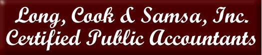 Welcome to the Long, Cook & Samsa, Inc. Website. This Website has been designed to become a helpful resource tool to you, our valued clients and visitors. You will see that not only have we highlighted background information on our firm (in our Profile section) and the services we provide (in our Services section), but have also included useful resources such as informative articles (in our Newsletter section) and we have taken the time to gather many links to external Websites that we felt would be of interest to our clients and visitors (in our Helpful Links section).